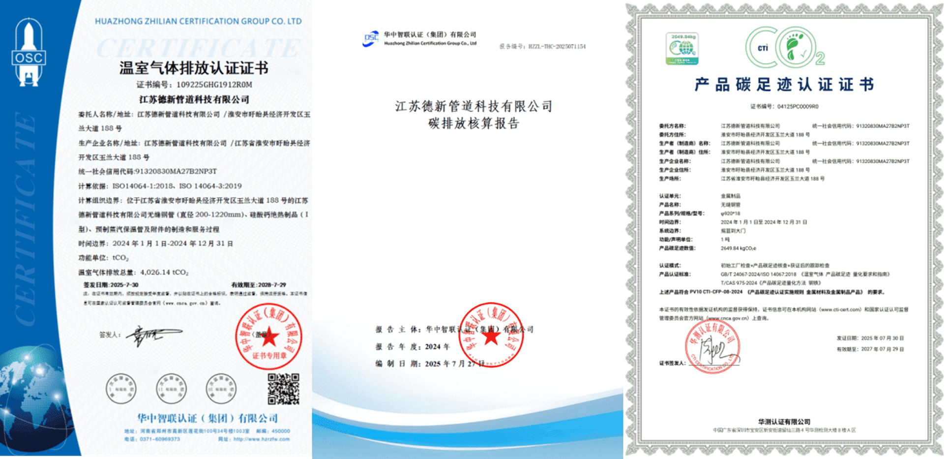 江蘇德新管道科技有限公司產品碳足跡、溫室氣體排放、碳排放核算報告網上公示