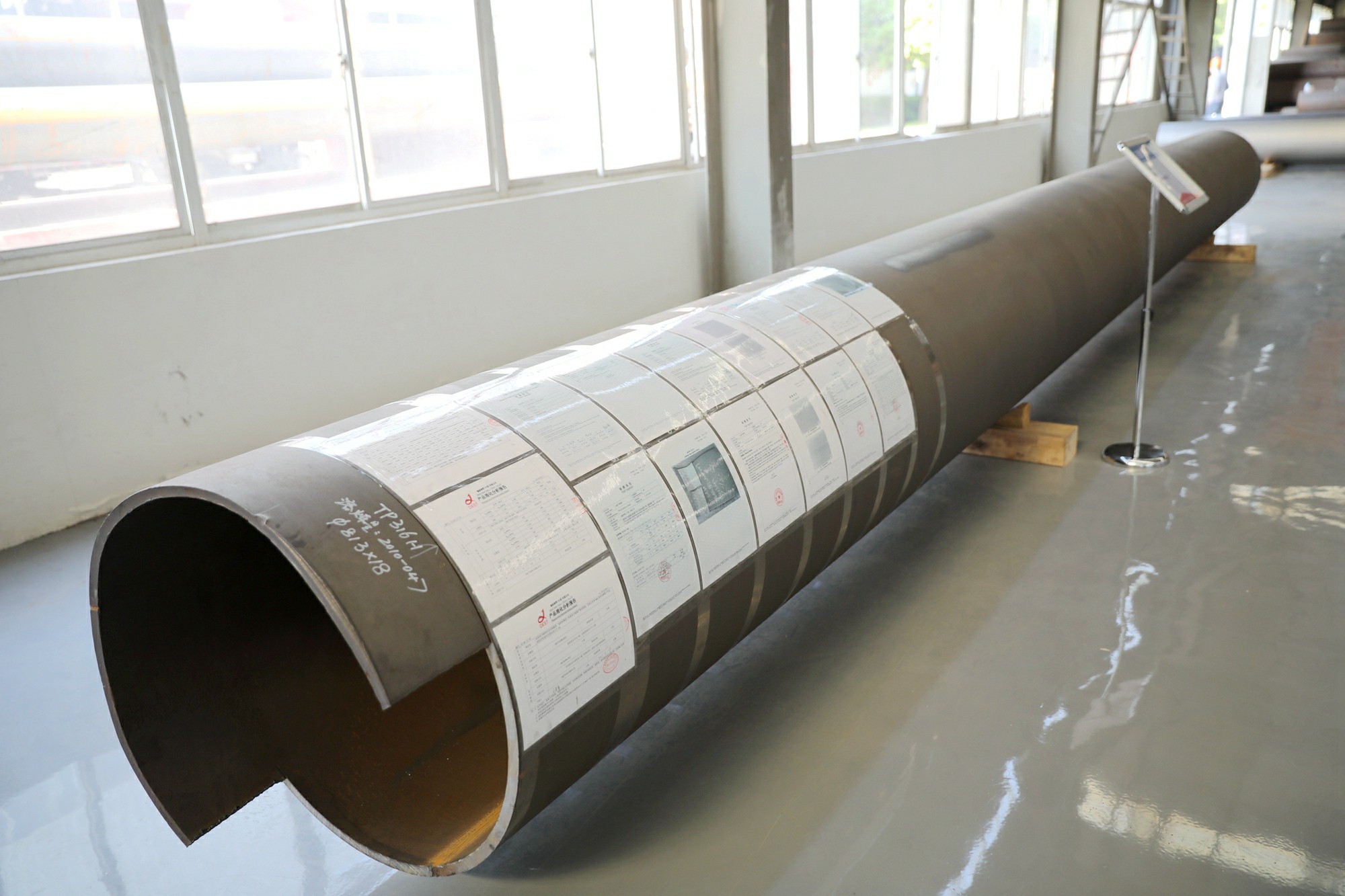 目前,公司大口徑無縫鋼管擁有石化用管、熱電用管、氣瓶用管、氧化鋁溶出套管等拳頭產品,各種材料、標準、規格的型式試驗報告完備。產品具有以下特點:(1)生產靈活,節能環保,小批量、多品種同樣適用;(2)坯料等級高,定制和儲備大量高等級鋼坯;(3)內外表面質量好;(4)尺寸精度高;(5)直徑大,可達1422mm,降低流通阻力,增加送氣量;(6)管壁薄,徑壁比可達40-100;(7)長度長,Φ762mm鋼管最長可達12m,提高施工效率,降低成本;(8)熱擴鋼種適應性強,20、20G、A106B、15CrMo、12Cr1MoVG、P11、P22、P91等材質均可加工。