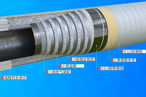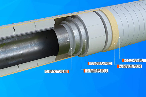 外保溫層選用硬質聚氨酯泡沫材料,耐熱性較低但隔熱保溫性能很好,同時聚氨脂發泡的延展性具備穩固作用,解決了傳統保溫結構因熱脹冷縮產生和增大塊間空隙的問題。