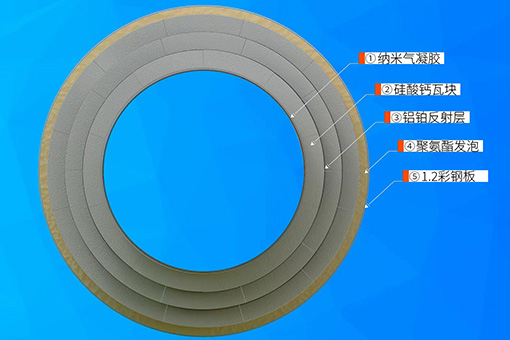 同時,在各保溫層間均裹敷鋁鉑反射布,減少輻射傳熱。這種復合隔熱保溫結構,讓各保溫層成為毫無空隙的整體,充分發揮了各種原材料的優點,在成本、耐磨性、整體剛性、使用壽命及隔熱保溫性能上取得了比較好的平衡。